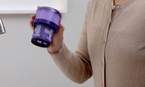 Filtret fångar mikroskopiskt damm som ackumuleras och påverkar prestandan. Upprätthåll sugkraften genom att tvätta filtret minst en gång i månaden, eller oftare om dammsugaren används mycket.