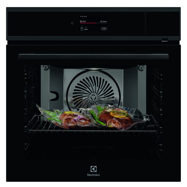 Electrolux inbyggd ugn och kvinna tittar på sin telefon