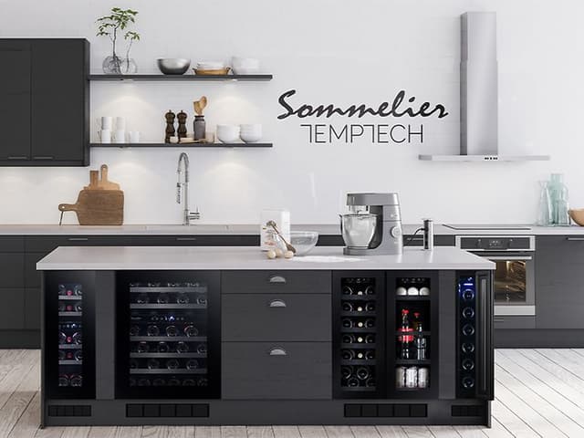 Ett vinkylskåp från TEMPTECH uppfyller de strängaste kraven på förvaring av vin, kvalitet och design. Vinkylskåpet är i modern design med svart glasfront och utdragbara hyllor i svart. Vinkylskåpet kan integreras i köket eller placeras fristående. Vinkylskåpet Sommelier by TEMPTECH finns i fyra olika storlekar.