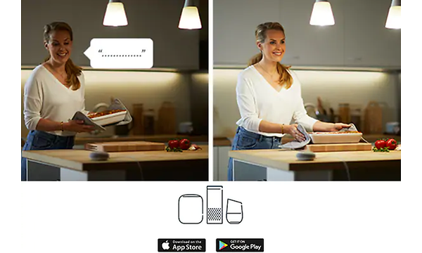 Ladda ner WiZ-appen till din smartphone eller surfplatta så kan du enkelt styra alla dina WiZ-produkter. Med Google Assistant och Siri Shortcuts kan du styra dina lampor enkelt genom att prata i din telefon. Röststyrning fungerar också om du har en smart högtalare som Google Home, Apple HomePod eller Amazon Echo.