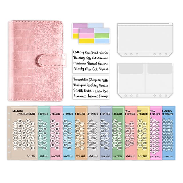 Kontantkuvert Budgetpärm för Sparutmaning Rosröd