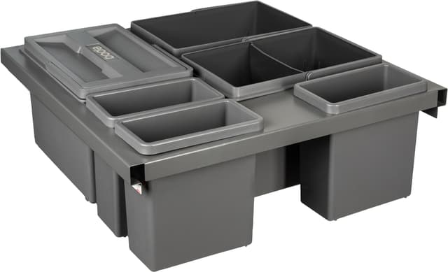 Välj ett källsorteringssystem som passa för kökslådor 60 cm eller 80 cm breda. Med Epoq XP Källsortering Cube 600 får du ett källsorteringssystem med flera behållare, som är enkel att installera direkt i kökslådan.