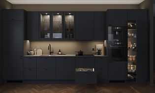 Även om du inreder med ett svart kök kan du fortfarande skapa en luftig och ljus atmosfär i köket. Istället för svarta överskåp nyttjas välplanerade köksskåp och lådor under för att maximera förvaringen. Låt en köksspecialist hos Epoq hjälpa dig rita ditt drömkök helt kostnadsfritt.