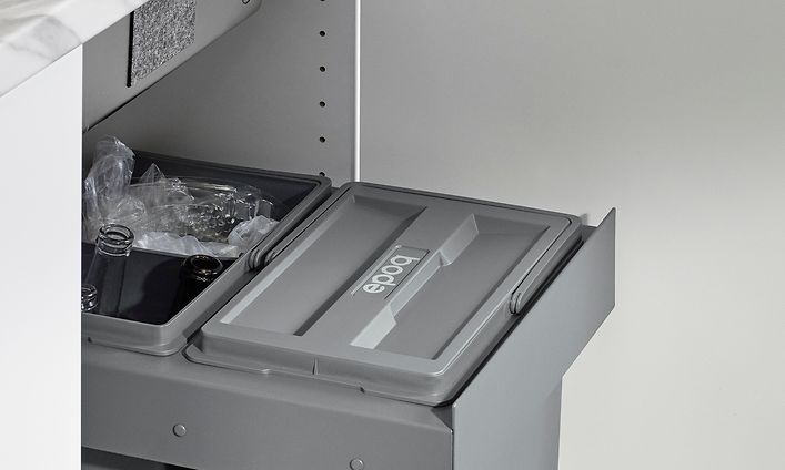 Med Epoqs källsorteringssystem Select 3 som monteras i bänkskåp, dras systemet ut automatiskt när dörren öppnas.