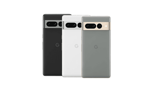 Bundle product image of three Google Pixel Pro 7 in black white and limegreen
