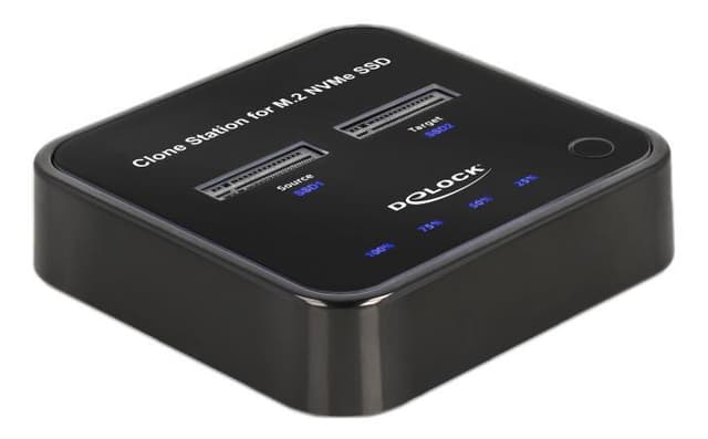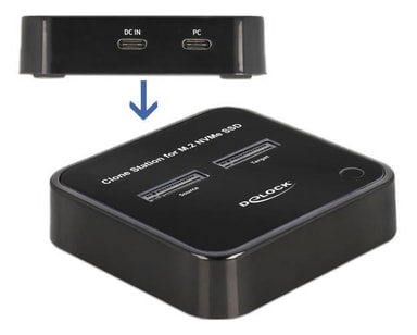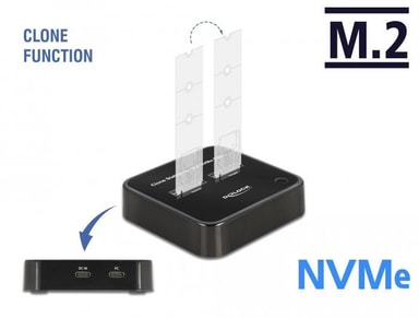 Delock M.2-dockningsstation för 2 x M.2 NVMe PCIe SSD-enheter med kloningsfunktion