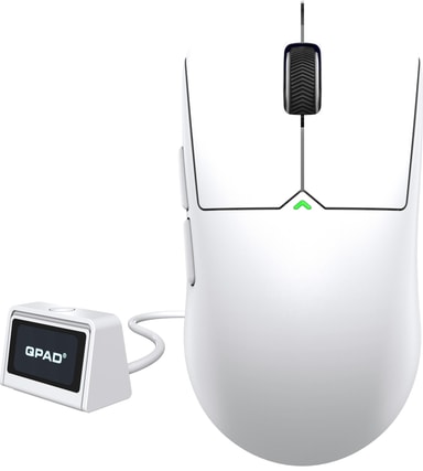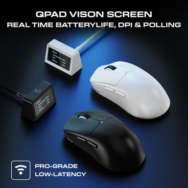 QPAD Mark Model 3 Vision trådlösa mus erbjuder en ambidextriös design med justerbar DPI upp till 26 000 DPI, en PAW 3395-sensor, tre anslutningslägen, en svarsfrekvens på 4000 Hz och en Vision-skärm för realtidsvisning av olika inställningar.Läs mer om produkten