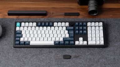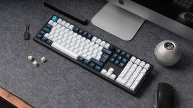 Detta tangentbord har en 100% fullstor layout och hållbara Double Shot PBT-tangenter med OEM-profil. IXPE-, PET- och latexskumlager dämpar effektivt vibrationer från plattan och switcharna, vilket bidrar till en tystare och jämnare skrivupplevelse. Double-Gasket Mount-designen ger bättre ljuddämpning, ökad stötdämpning med silikonkuddar mellan höljena och har också en flexibel polykarbonatplatta för en förfinad skrivkänsla. Tangentbordets kropp är tillverkad av högkvalitativt 6063-aluminium, vilket ger bättre styrka och hållbarhet.