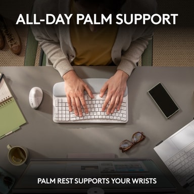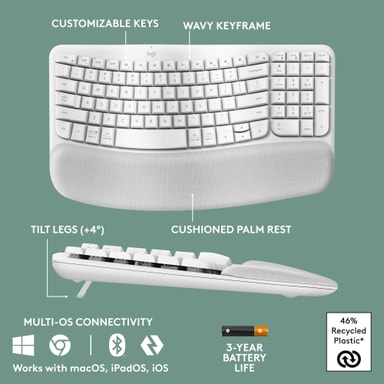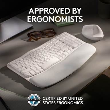 Logitech Wave Keys ergonomiska tangentbord ser till att dina handleder skyddas från belastning och smärta när du arbetar eller studerar. Med den böjda designen, ergonomiskt placerade tangenter och ett bekvämt handledsstöd kan du skriva i timmar.Läs mer om produkten