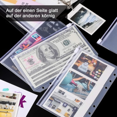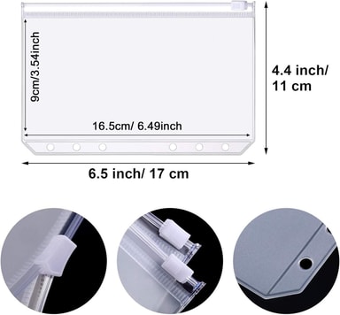Organiserad förvaring: Dessa PVC-dragkedjepåsar är perfekta för att organisera kvitton, sedlar och andra småsaker i din A6 6-ringspärm, och håller allt snyggt och tillgängligt.