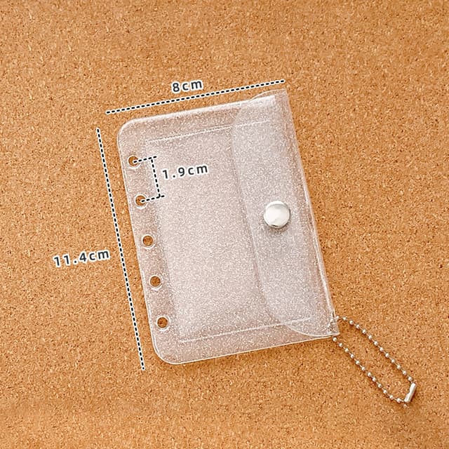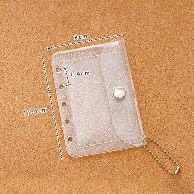 Säker och transparent: Tillverkad av högkvalitativ, transparent PVC, denna korthållare säkerställer säkerheten för dina tillhörigheter samtidigt som den möjliggör enkel synlighet och åtkomst. Designen med femhålsringspärm säkerställer säker fastsättning i din anteckningsbok, vilket förhindrar förlust eller felplacering.