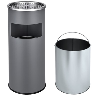 Soptunnan med askkopp av hög kvalitet erbjuder inte bara elegant design, utan tar också hem poäng med sin funktionalitet – Askfatet har en robust, inbyggd papperskorg. Med sitt eleganta och tidlösa utseende är papperskorgen utmärkt både för inom- och utomhusbruk. Oavsett om du vill ha den i trädgården, framför huset eller till företaget - golvaskkoppen passar lika bra överallt. Den är vädertålig, vindskyddad och tillverkad av mycket robust metall. Tack vare de löstagbara insatserna, är suptunnan med askkopp mycket lätt att rengöra.