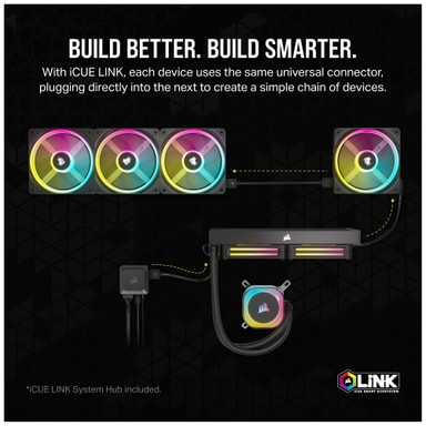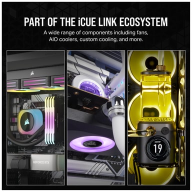 Förbättra ditt systems hastighet samtidigt som du håller allt prydligt tack vare iCUE LINK-ekosystemet, som gör att alla iCUE LINK-enheter kan anslutas till varandra och styras enkelt med iCUE LINK System Hub.
