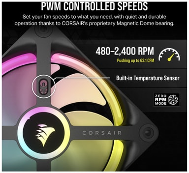 Förbättra din prestanda med den integrerade temperatursensorn och dedikerade MCU i varje fläkt som möjliggör mer precisa kontrollalternativ med iCUE LINK.