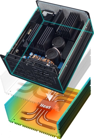 Med sin fläktlösa design arbetar detta nätaggregat vid 0dBA, vilket gör det idealiskt för miljöer där ljudreducering är en prioritet.