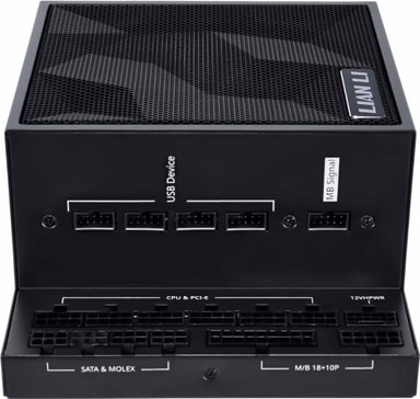 Lian Li Edge 1300W nätaggregat har en L-formad design för chassin med dubbla kammare, 80 PLUS Platinum-effektivitet och en inbyggd USB-hub för enkel kabelhantering. Med premiumkomponenter, helt modulära sleeve-kablar och ATX 3.0/3.1-stöd är den byggd för högpresterande, rena PC-byggen.
