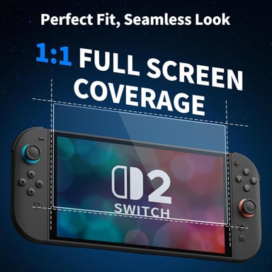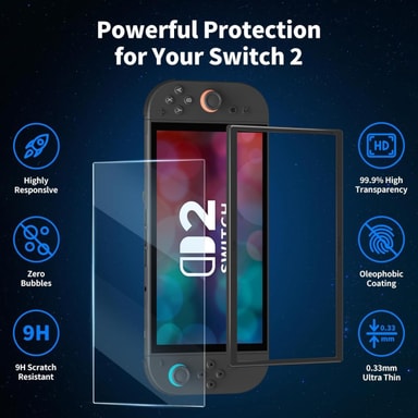 Ultimat skyddslösning: Skydda din Switch 2:s skärm från dagligt slitage med vårt robusta skärmskydd i härdat glas. Hårdhetsgraden 9H ger överlägset motstånd mot repor från nycklar, mynt och andra vassa föremål, vilket bevarar skärmens ursprungliga skick. Designat med splittersäker teknologi, absorberar det stötar för att förhindra skärmskador från oavsiktliga fall. Den ultratunna designen bibehåller pekskärmskänsligheten, vilket säkerställer felfri prestanda. Lätt att installera med bubbelfritt lim. Vårt skärmskydd erbjuder pålitligt och diskret skydd för din värdefulla enhet. Det är en investering i livslängden och värdet på din Switch 2.