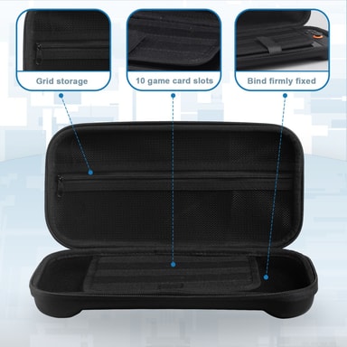 Optimerad design för Switch 2: Väskan är skräddarsydd för att passa Nintendo Switch 2 perfekt. Den har exakta utskärningar och elastiska band som håller konsolen och tillbehören säkert på plats. Det finns tillräckligt med utrymme för att förvara konsolen, spelkort, kablar och andra små tillbehör. Den interna designen är optimerad för att maximera utrymmet och minimera rörelsen under transport, vilket ger ett extra lager av skydd för din värdefulla spelkonsol.