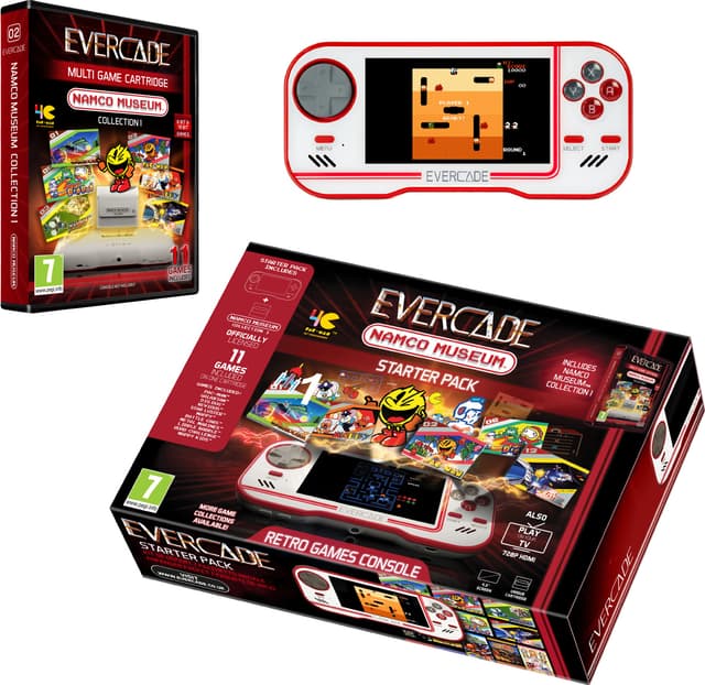 Evercade Starter Packs spelkonsol tar dig tillbaka till barndomen med sina välkända retrospel. Den har 4,3-tums skärm med valbart skärmförhållande, 4 timmars batteritid och HDMI-port för TV-anslutning.Läs mer om produkten
