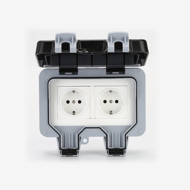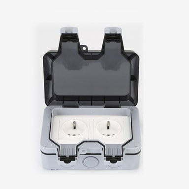 Vattentätt och dammtätt vägguttag: Med en sin IP66-klassning erbjuder detta dubbla utomhusuttag ett fullt skydd mot vatten och damm och är säker även i utmanande väderförhållanden.