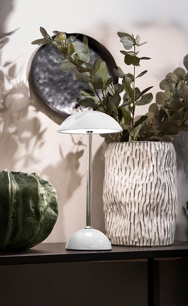 Aura uppladdningsbar bordslampa EL206258042 har touchkontroll och steglös dimmer. Den laddas på 3 timmar och lyser i 4-6 timmar. Med 100 lumen ljusstyrka är den perfekt för inomhusbruk som dekoration eller läslampa.Läs mer om produkten