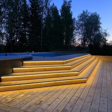 Altan & uteplats – snyggt ljus längs räcke, trappsteg eller under bänkar