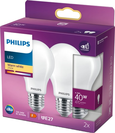 - 2 x Philips Classic A60 LED-lampa 5W E27
