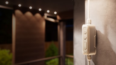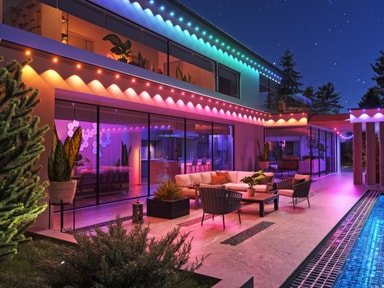 Detta 15 m kit innehåller 30 individuellt adresserbara LED-puckar och kan förlängas upp till 45 m med expansionspaket. Det inkluderar även flera förlängningskablar och skarvdon för flexibel placering över olika utomhusområden.