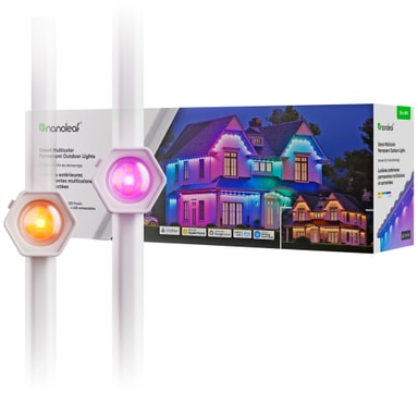 Nanoleaf Smarter Series 1D utomhusbelysning expansionskit N7401K02-15POL är ett 15m LED-belysningskit med 30 individuellt styrbara ljuspuckar. Det fungerar med Wi-Fi, Bluetooth och Matter över Wi-Fi, och kan kortas eller förlängas upp till 45 m med expansioner.