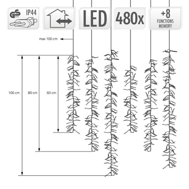 • ECD Germany LED ljuskedja ridå 480 LED varmvit 8 lägen timer 6 trådar IP44