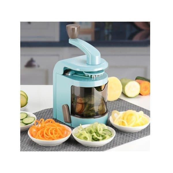 Grönsaksstrimlare / Grönsakssvarv Stabil och rejäl grönsakstrimlare, här en variant som står stadigt på köksbänken tack vare sugpropparna på undersidan, vilket gör att du snabbt och enkelt kan svarva grönsaker som t ex. zucchini till spaghetti eller fettuccine liknande spiraler. Är lätt att använda, kladdfri och kan hantera en mängd olika frukter och grönsaker utan problem.