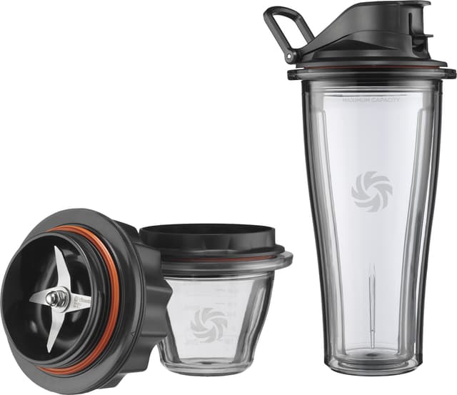 Vitamix Ascent mixerskål och bägare startkit VI68391 låter dig anpassa din Vitamix Ascent-mixer genom att addera en 600 ml stor skål eller en 225 ml stor smoothiebägare. Både skålen och bägaren har ett spillsäkert lock.Läs mer om produkten