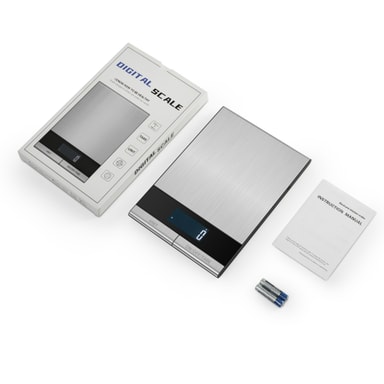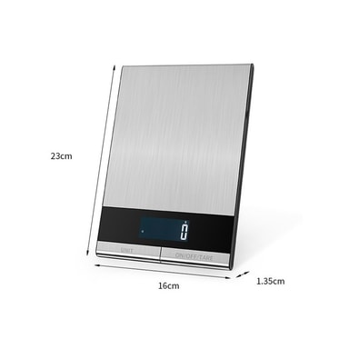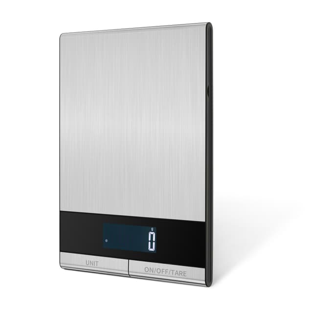 Rostfritt stål design: Lyft ditt kök med den eleganta och moderna designen på denna digitala köksvåg i rostfritt stål. Tillverkad av högkvalitativt rostfritt stål är denna våg inte bara estetiskt tilltalande utan också otroligt lätt att rengöra och underhålla. Den släta ytan motstår fläckar och fingeravtryck, vilket säkerställer att din våg alltid ser bäst ut. Konstruktionen i rostfritt stål ger också utmärkt stabilitet och stöd, vilket gör att du kan väga även stora föremål med tillförsikt. Dess smala profil gör den lätt att förvara i vilken kökslåda eller skåp som helst. Vågens moderna design integreras sömlöst i alla köksinredningar och ger en touch av sofistikering till ditt kulinariska utrymme. Investera i en våg som är lika vacker som den är funktionell och njut av fördelarna med ett premium köksredskap.