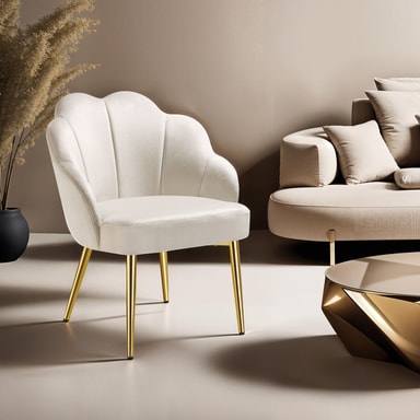 • tectake Fåtölj Hellen, stoppad med sammetstyg 62 x 66 x 80.5 cm Grädde/Guld