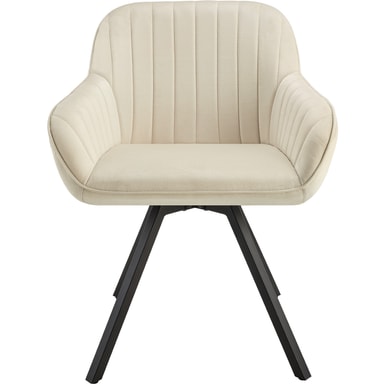 Den rymliga sitsen, tillsammans med det genomgående arm- och ryggstödet, ger en bekväm sittkomfort. I kombination med det exklusiva sammetstyget och den stoppning av högdensitetsskum, skapas en sittupplevelse som är något extra. Den 360° roterbara funktionen ger ökad rörelsefrihet och gör stolen extra flexibel i vardagen.