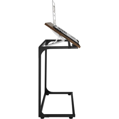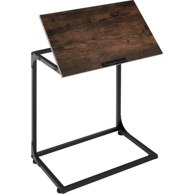 Upplev den visuella dragningskraften och exceptionella funktionaliteten hos den mångsidiga industriella stilen med filigransidobordet Ruston från tectake. Som ett bekvämt ställe att sätta en bärbar dator på kan bordsskivan lutas i olika steg och är försedd med en propp i botten, medan fyra skruvfötter garanterar utmärkt stabilitet. Tack vare den slående C-formen kan den praktiska möbeln enkelt dras upp och användas från soffan, fåtöljen eller sängen. Designen utan krusiduller och den framgångsrika kontrasten mellan materialen trä och metall ger den linjära möbeln lugn och harmoni - perfekta förutsättningar för att arbeta eller koppla av.