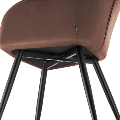 De slanka stålbenen på köksstolen är estetiskt tilltalande, samtidigt som de är mycket robusta och hållbara. Den solida konstruktionen gör stolen mycket stabil och den imponerar med en hög belastningskapacitet. De golvskonande och halkfria plastkåporna säkerställer dessutom att matstolarna står stadigt på varje underlag.