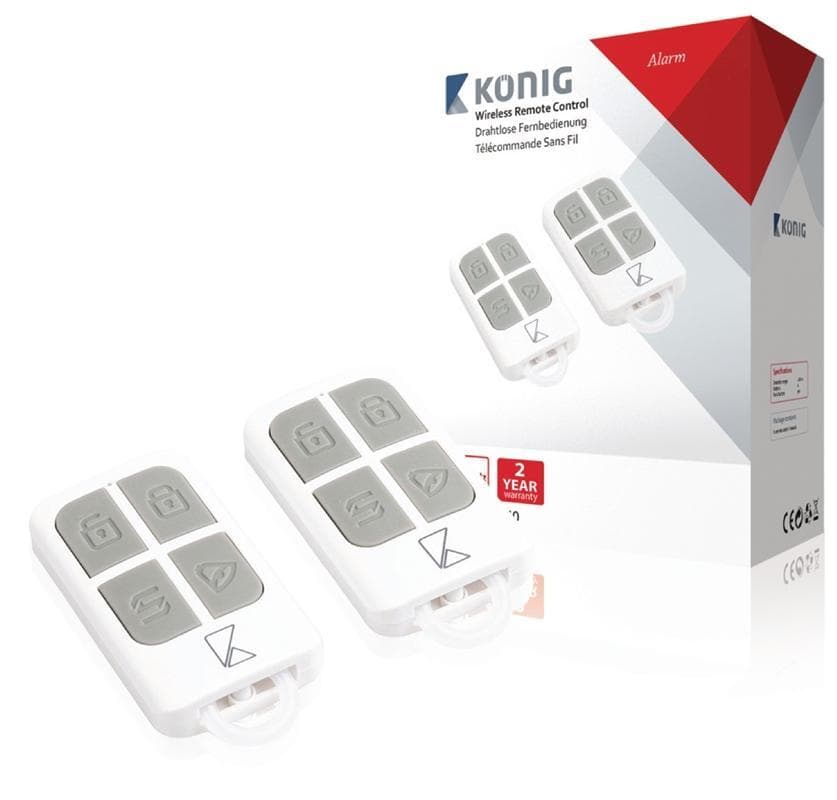 Para ihop fjärrkontrollen med ditt befintliga König SAS-ALARM240-larmsystem vid den första användningen. Fjärrkontrollen är försedd med en panikknapp som aktiverar larmsystemet i nödsituationer med en enda knapptryckning.