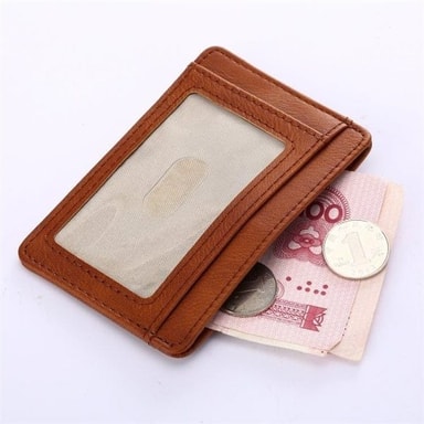 Rfid-skyddad kreditkortshållare tillverkad av pu-läder och genomskinlig pvc. Den har en liten och smidig storlek som gör den lätt att ha med sig i fickan eller väskan. Rfid-skyddet innebär att signaler från obehöriga elektroniska skanningsenheter blockeras. På så sätt skyddar du dig mot stöld av dina kortuppgifter och annan personlig information.
