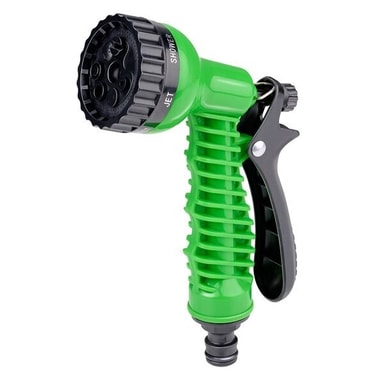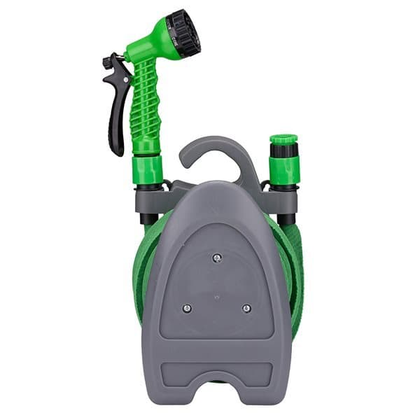Det medföljande munstycket har sju olika sprutlägen, vilket gör att du enkelt kan justera vattenflödet beroende på om du vattnar blommor, sköljer av uteplatsen eller tvättar bilen. Tack vare snabbkopplingen går det snabbt att koppla slangen till kranen, och den medföljande hållaren kan smidigt monteras på väggen för organiserad förvaring.