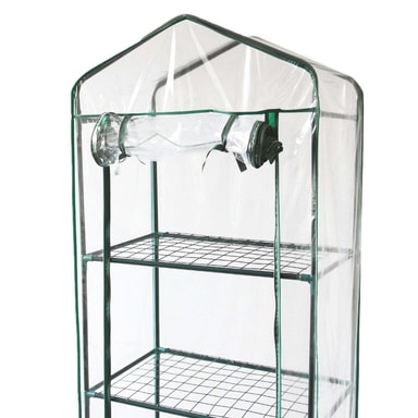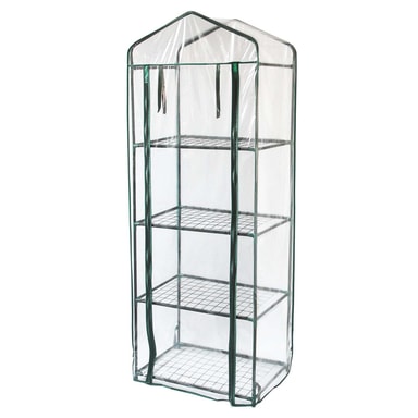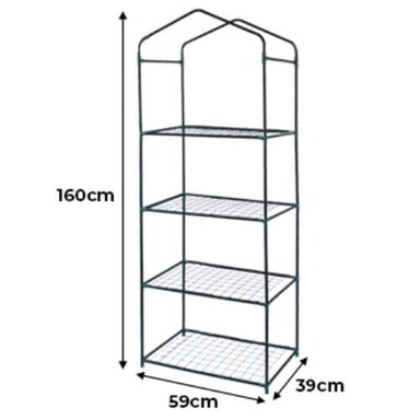Ge dina växter och plantor den bästa starten på livet med detta praktiska miniväxthus, oavsett årstid. Detta miniväxthus mäter 59 x 39 x 160 cm och är perfekt för små utrymmen med gott om plats och gott om hyllor för att organisera dina växter. Det slitstarka, vattentäta plastskyddet skyddar dina växter från väder som regn, frost, hårda vindar och UV-strålar. Växthuset kan användas inomhus och utomhus och rymmer en mängd olika växtstorlekar.