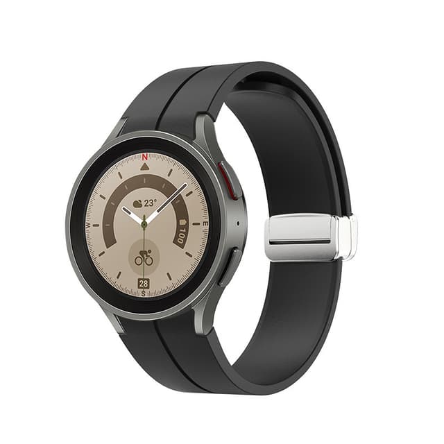 Bekväm och säker: Detta klockarmband är tillverkat av mjukt, flexibelt silikon och ger komfort hela dagen. Det säkra magnetspännet ser till att din klocka sitter på plats, även under intensiva aktiviteter.
