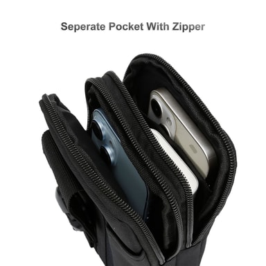 Bältesfickan för HTC ONE SU har den perfekta storleken: 18,5 x 12,5 cm. Huvudfickan passar smartphones upp till 6,7 tum.