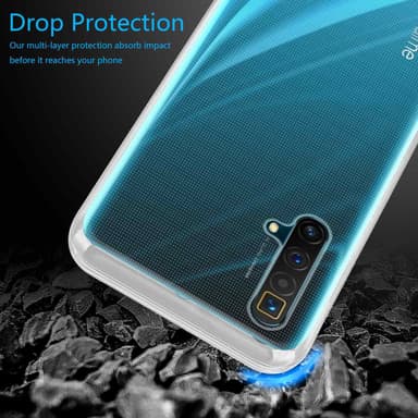 Skyddsomslagets silikoninnehåll i TPU-föreningen förhindrar att skyddet lossnar från telefonen. TPU-innehållet förhindrar dessutom onödigt fastande av damm och ludd, t.ex. från ludd på kläder.