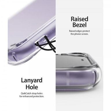 Duo-QuikCatch lanyardhål på varje sida av enheten möjliggör användning av tillbehör som handremmar, handledslinor och telefonberlocker (ytterligare tillbehör ingår ej)