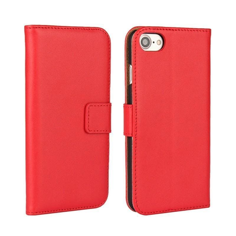 SKALO iPhone SE (2020/2022) Plånboksfodral Äkta Skinn - Röd