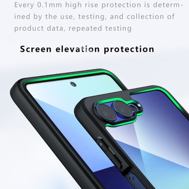 Detta hybridfodral kombinerar stilren design med funktionell prestanda. Den inbyggda magnetringen är kompatibel med MagSafe och ger en säker passform för trådlös laddning. Den kristallklara ytan framhäver telefonens ursprungliga utseende samtidigt som den skyddar mot vardagligt slitage. Konstruktionen i TPU och PC ger både flexibilitet och hållbarhet, medan de exakta utskärningarna säkerställer enkel åtkomst till alla funktioner. Upphöjda kanter runt skärm och kamera skyddar mot repor och stötar.