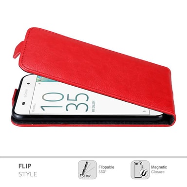 DESIGN: Elegant fodral för Sony Xperia E5 i flip-stil (kan vikas vertikalt) som ger din mobiltelefon ett perfekt grepp. Luckan kan fällas ner helt och hållet och stör inte när du pratar eller skriver i telefonen.
