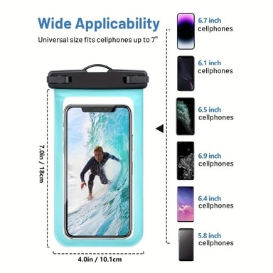 Det genomskinliga materialet ger dig full tillgång till pekskärmen och Face ID, så du kan använda mobilen precis som vanligt – även under vattnet. Den smidiga designen rymmer enheter upp till 7,2 tum och passar lätt i väskan eller runt halsen. Oavsett om du ska till stranden, poolen eller på äventyr i naturen, är detta fodral ett måste för att hålla mobilen torr, skyddad och tillgänglig.
