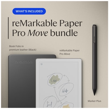reMarkable Paper Pro Move E-ink-surfplatta + Marker Plus & Leather Folio-paket ger en pappersliknande upplevelse, 15 dagars batteritid, handskrift-till-text-konvertering och molnsynkronisering för bekväm och produktiv användning på språng.Läs mer om produkten
